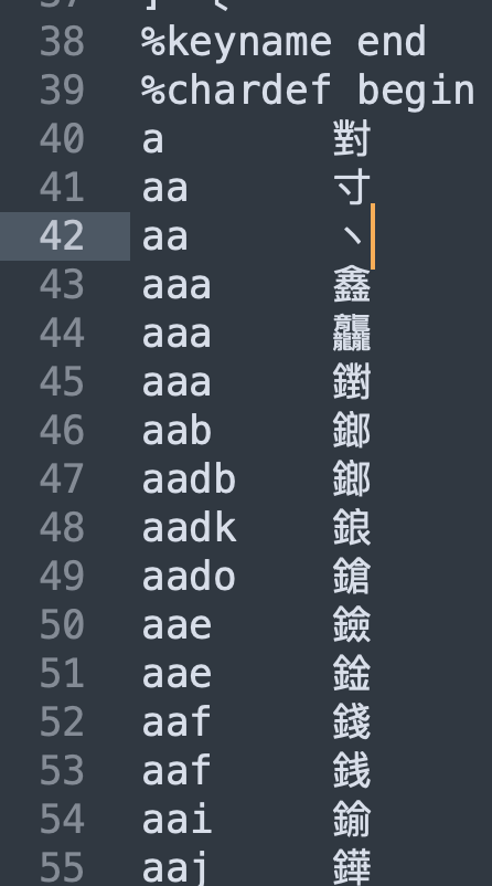 cin file: 把輸入的鍵轉換到中文字的文件